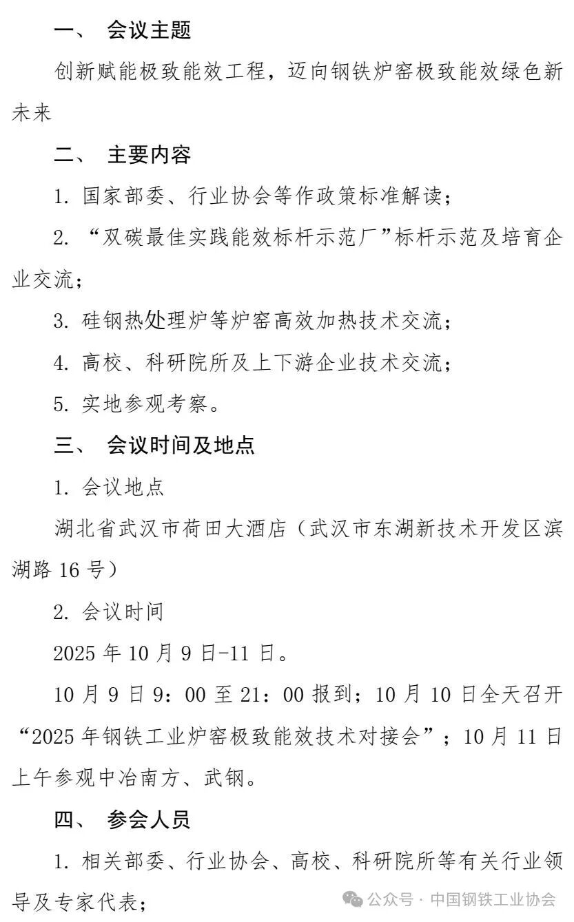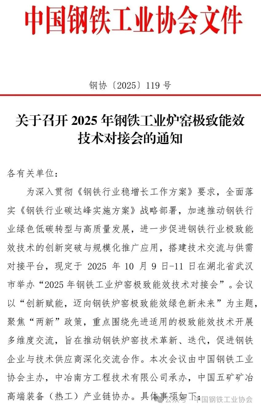 關(guān)于召開2025年鋼鐵工業(yè)爐窯極致能效技術(shù)對(duì)接會(huì)的通知