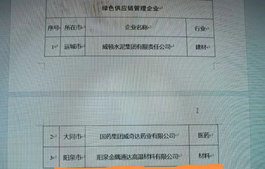 據(jù)山西省工業(yè)和信息化廳官網(wǎng)2025年9月5日公布的“2025年度山西省綠色制造名單”,陽泉金隅通達(dá)高溫材料有限公司榮獲“2025年度山西省綠色供應(yīng)鏈管理企業(yè)”,標(biāo)志著該公司綠色供應(yīng)鏈管理邁上新臺階,綠色轉(zhuǎn)型發(fā)展取得新成果,為行業(yè)綠色發(fā)展樹立了新標(biāo)桿。
