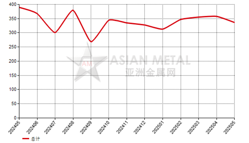 2025年5月份巴西鎂砂出口額7,839,000.00美元,去年同期為8,026,000.00美元,上月為6,504,000.00美元,同比下跌2.33%,環(huán)比上漲20.53%。出口均價336.39美元/公噸,去年同期為389.62美元/公噸,上月為357.83美元/公噸。