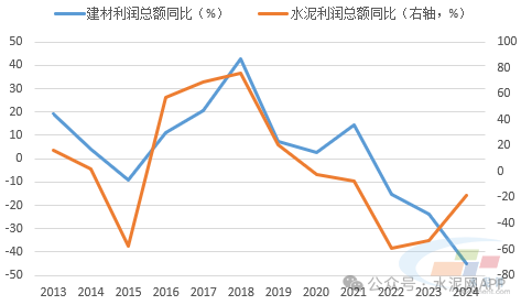 從近12年數(shù)據(jù)看,水泥行業(yè)利潤(rùn)總額同比走勢(shì)與建材整體基本一致,2022-2024年,水泥行業(yè)利潤(rùn)大幅下滑,是拖累建材行業(yè)連續(xù)三年持續(xù)下降的主要因素,因此水泥實(shí)現(xiàn)穩(wěn)增長(zhǎng)對(duì)整個(gè)建材行業(yè)穩(wěn)增長(zhǎng)至關(guān)重要。