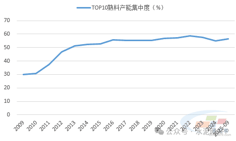 圖3:前十企業(yè)熟料產(chǎn)能集中度走勢(shì)