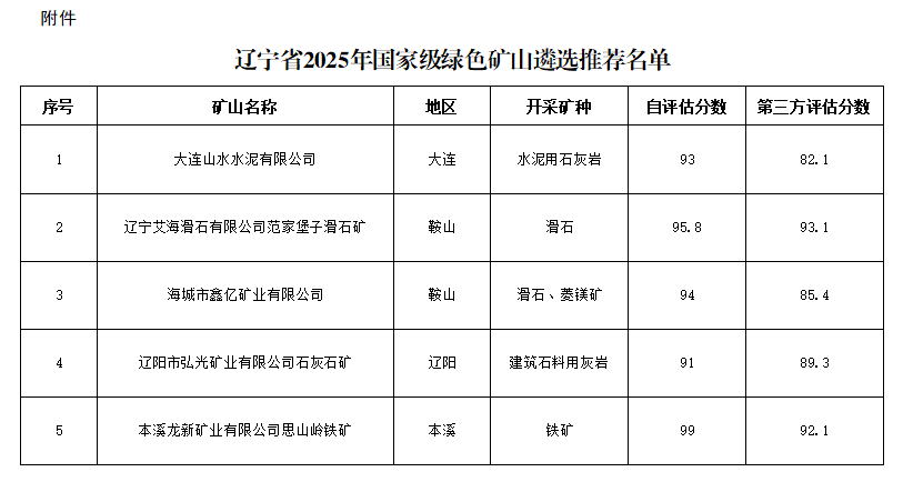 附件:遼寧省2025年國(guó)家級(jí)綠色礦山遴選推薦名單