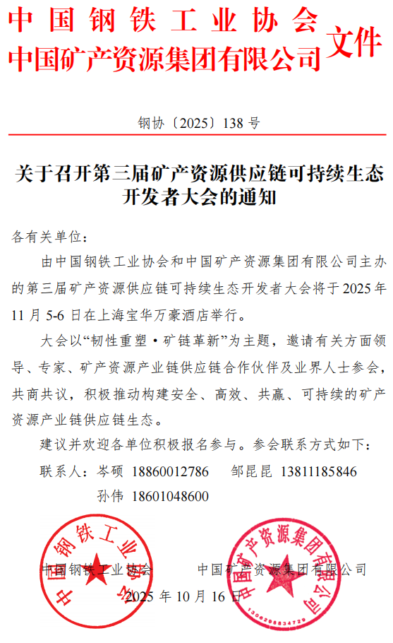 關(guān)于召開第三屆礦產(chǎn)資源供應(yīng)鏈可持續(xù)生態(tài)開發(fā)者大會(huì)的通知