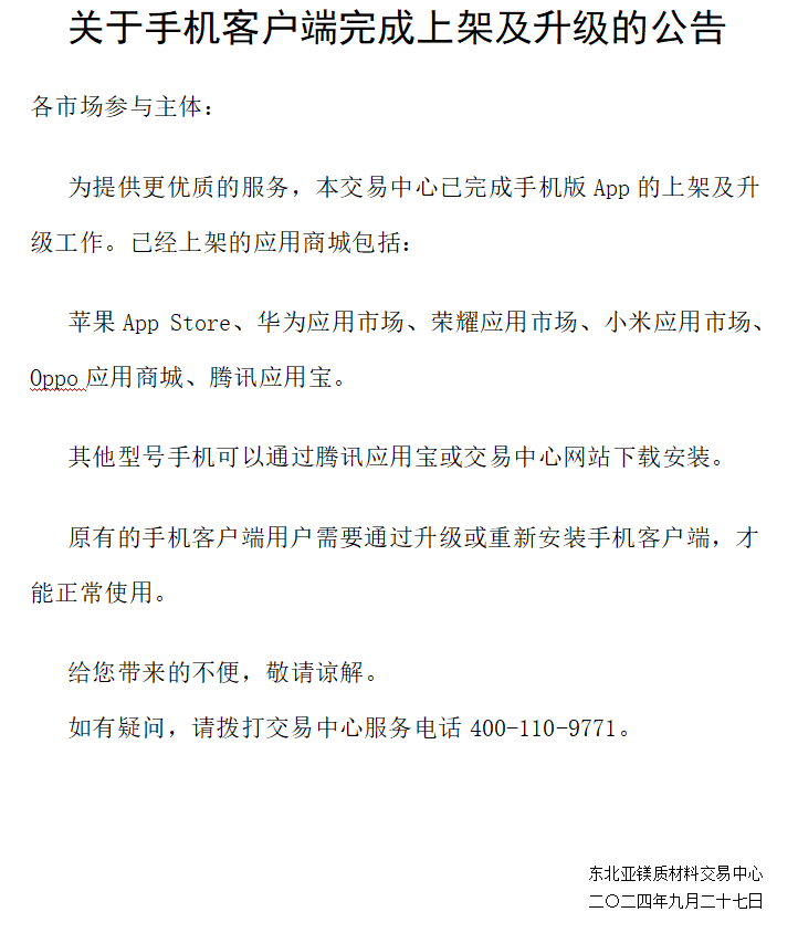 關(guān)于手機(jī)客戶端完成上架及升級的公告