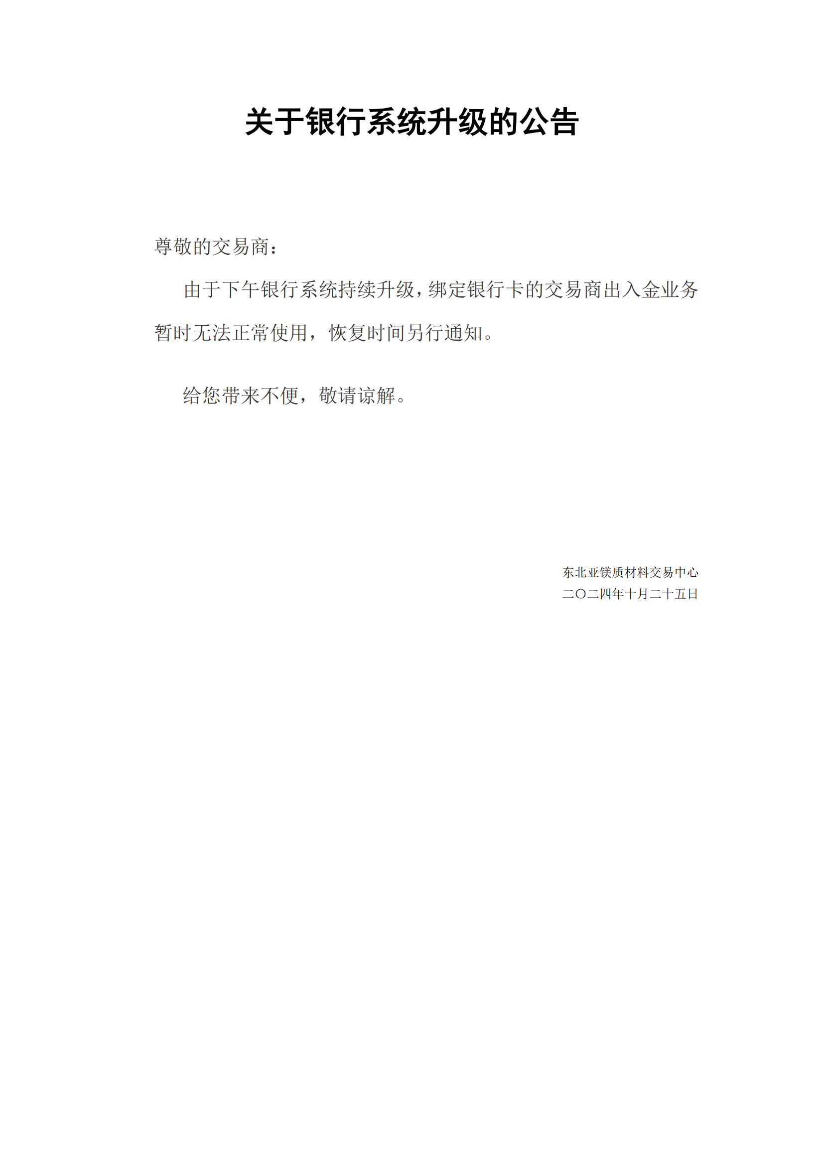 關(guān)于銀行系統(tǒng)升級(jí)的公告