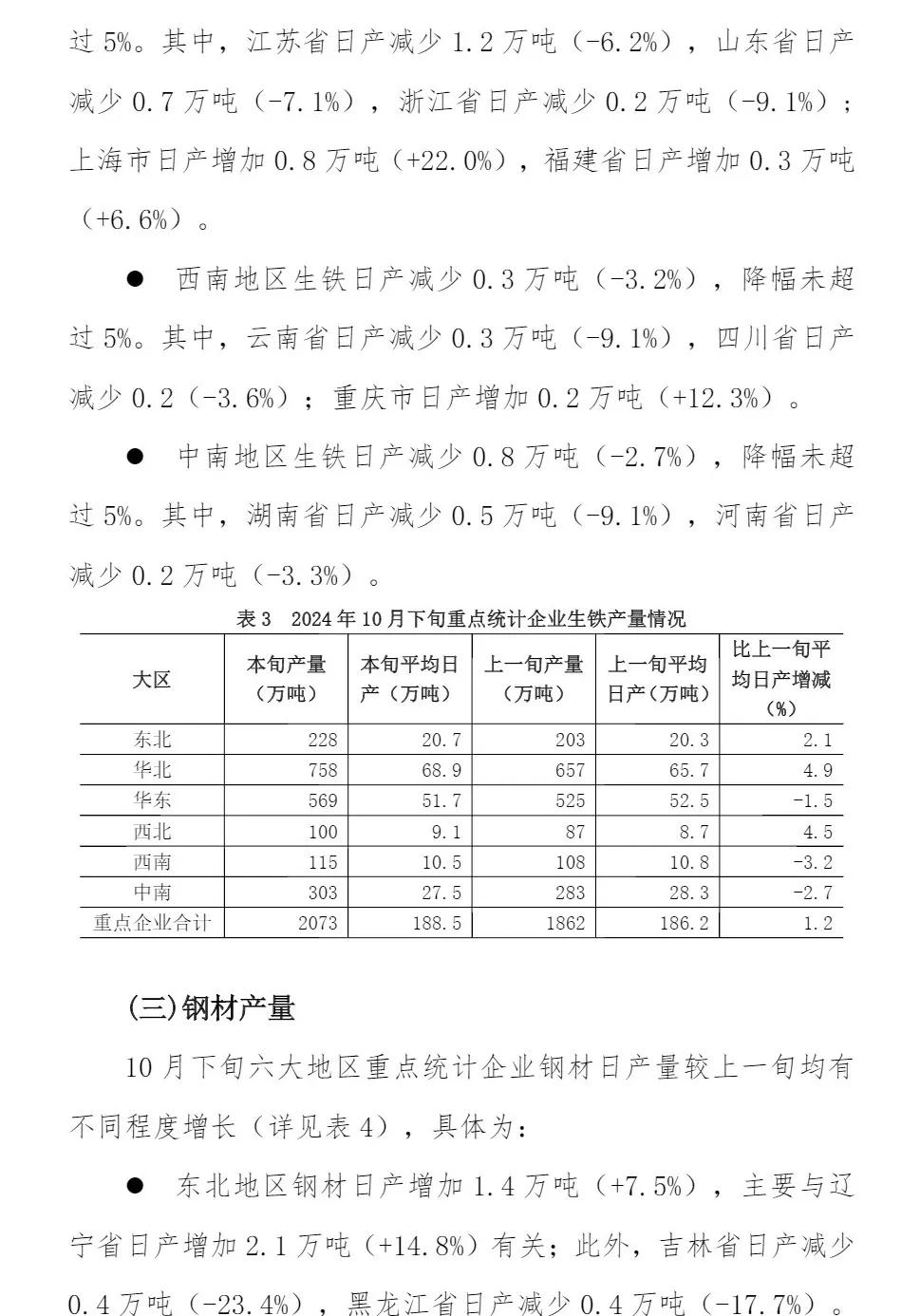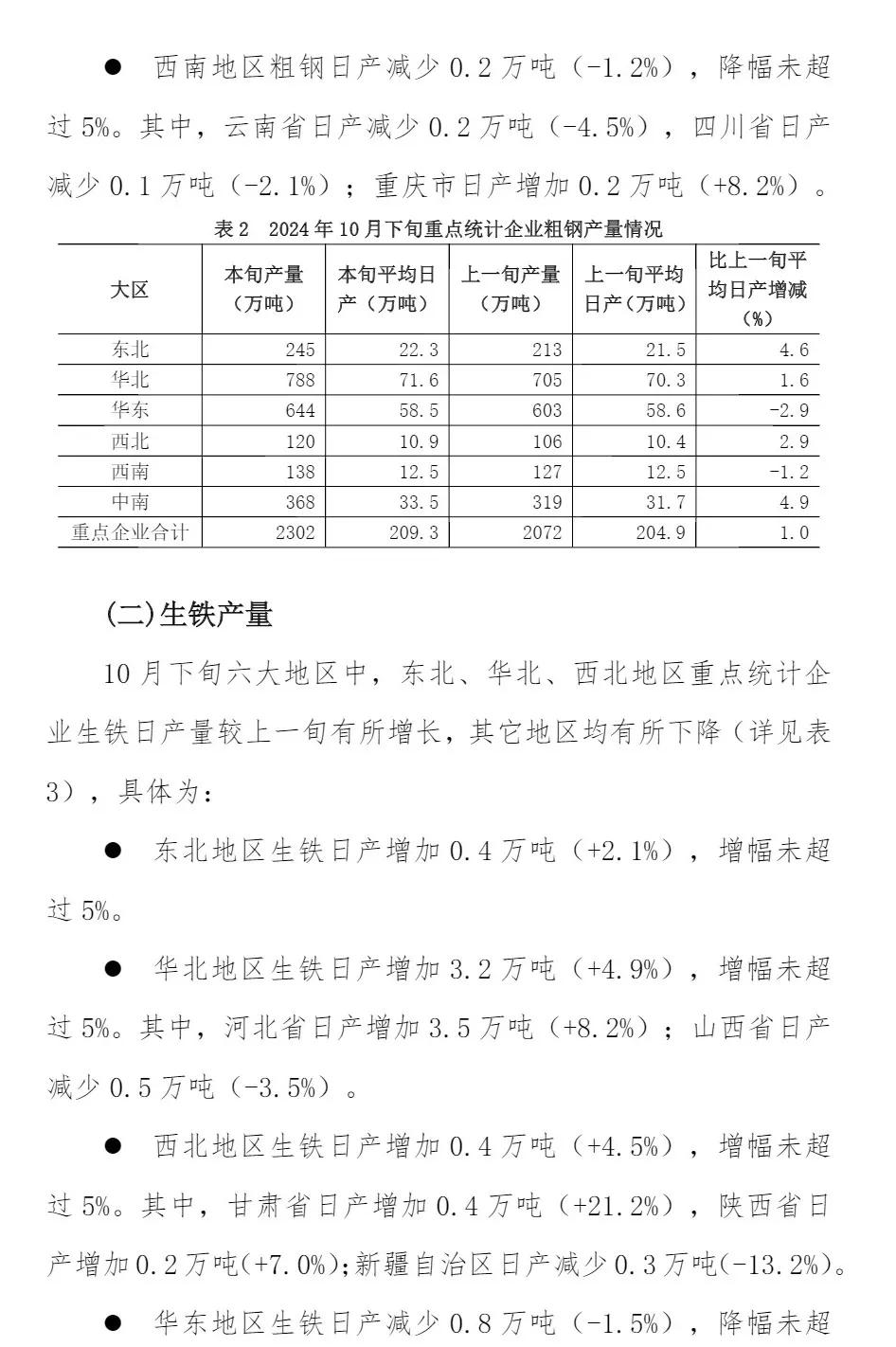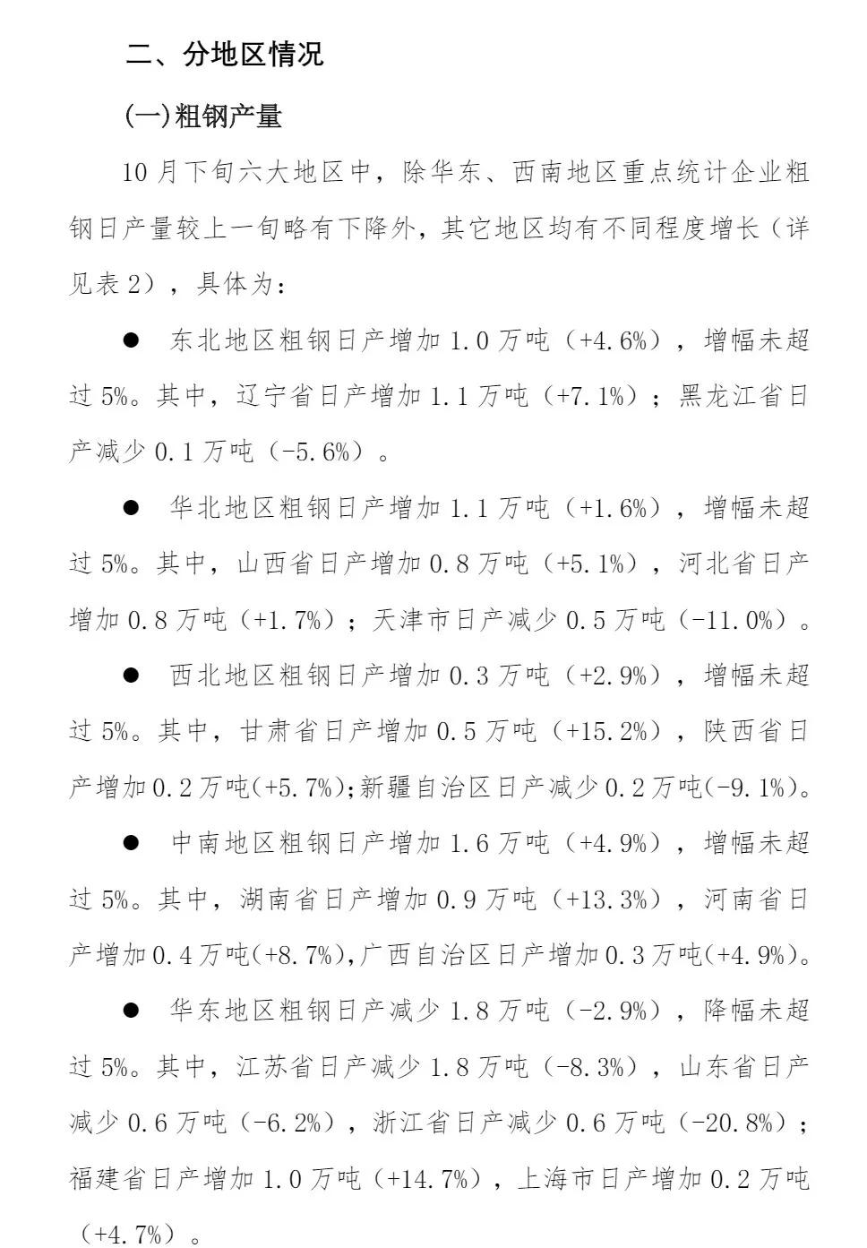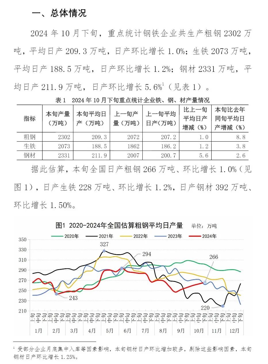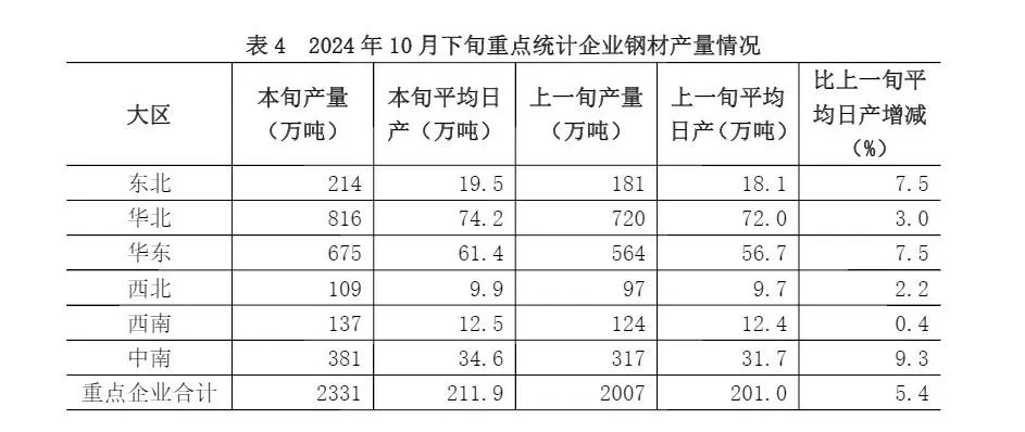 10月下旬重點企業(yè)鋼鐵產(chǎn)量旬報