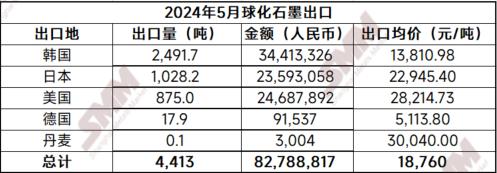 2024年4月,中國鱗片石墨出口量為4,657噸,環(huán)比減少9%,同比減少21%;中國球化石墨出口量為4,413噸,環(huán)比增長22%,同比減少8%。