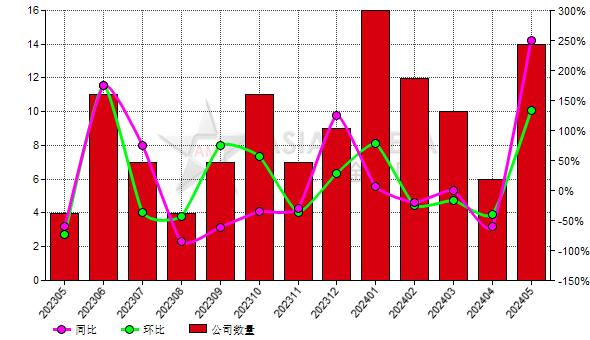 5月份中國(guó)共計(jì)14家鎂錠生產(chǎn)商增產(chǎn),上個(gè)月為6家,去年同期為4家。5月份增產(chǎn)鎂錠生產(chǎn)商分布為陜西11家,山西1家,黑龍江1家,內(nèi)蒙1家。