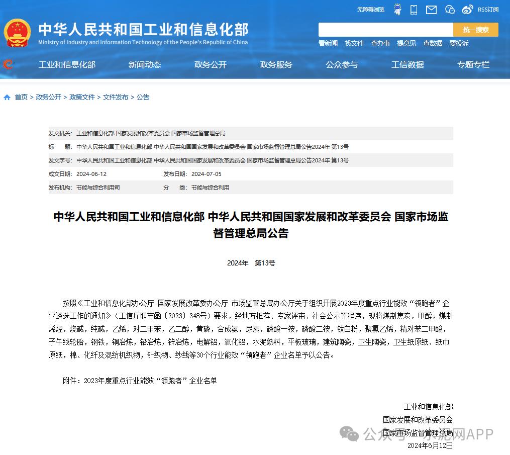 近日,工業(yè)和信息化部、國家發(fā)展和改革委員會、國家市場監(jiān)督管理總局聯(lián)合發(fā)布《2023年度重點行業(yè)能效“領(lǐng)跑者”企業(yè)名單》,其中華新水泥(道縣)有限公司、華新水泥(黃石)有限公司、吳忠賽馬新型建材有限公司、冀東海天水泥聞喜有限責(zé)任公司入選。